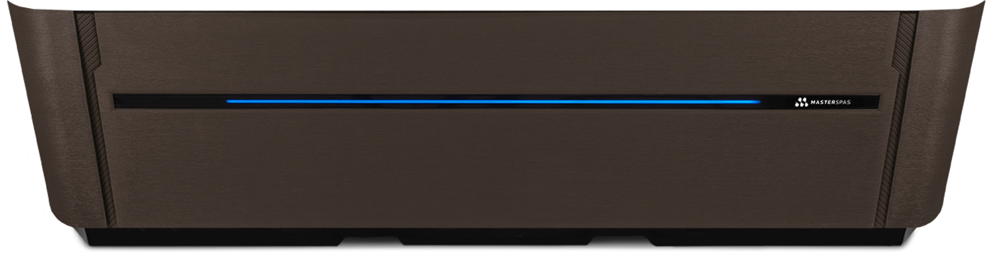 Soft exterior lighting brings the cabinet's modern design to life. The illuminated MasterSpas logo remains lit as a signature that the spa is ready and waiting, while a subtle light bar activates at night to highlight the refined design.